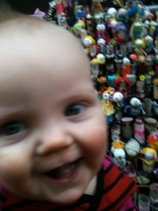 Efter avslutad inspelning beundrade vi förstås några av de 4 000 minimellos som blivit inskickade. Familjens minsting ville förstås helst röja sönder alla…