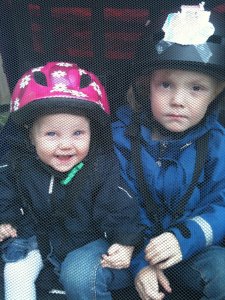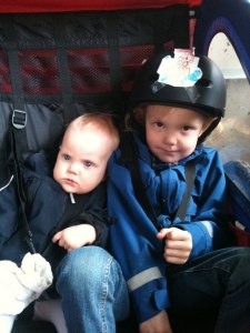 En mycket glad lillasyster och en luttrad storebror… Som egentligen är för stor för att åka cykelvagn enligt mig, men det var en trevlig och mysig start för både honom och framför allt för lillsnurpan som först var väldigt skeptisk till fordonet. Det var tack vare honom som hon alls ville sätta sig där från början. Tänk så bra det är med syskon! ♥