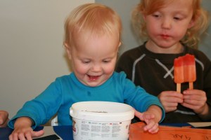 Vad är en glass jämfört med solroskärnor??? Inte mycket enligt henne tydligen. Men storebror ser något oförstående ut…
