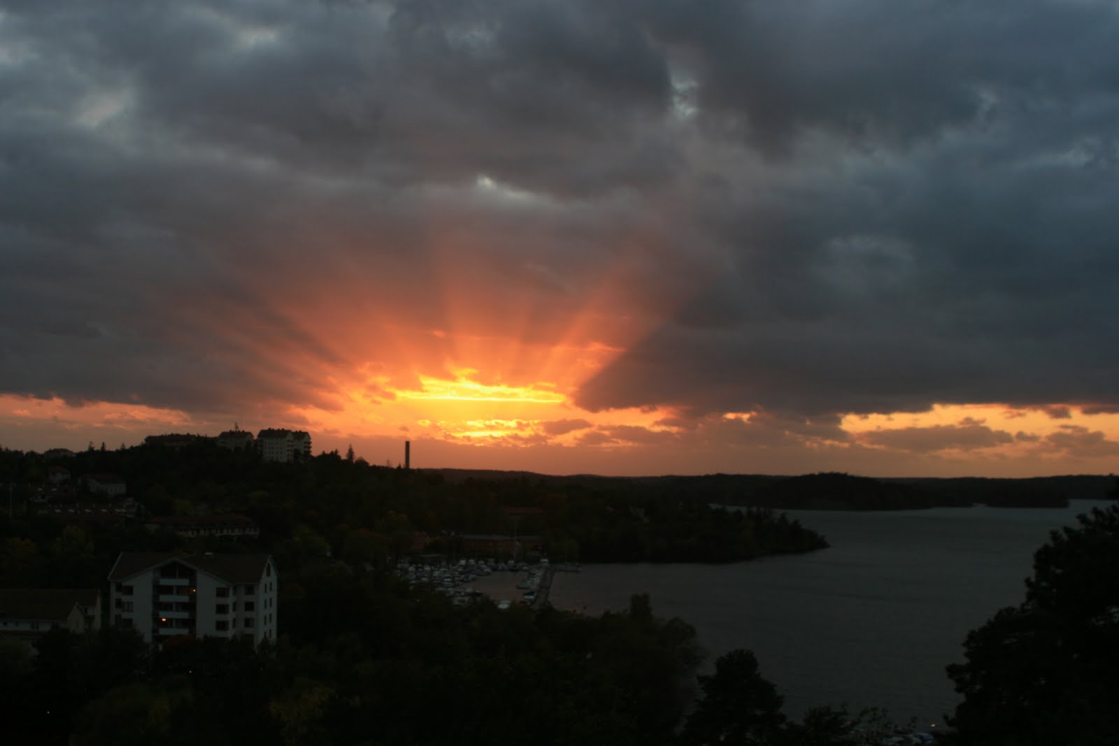 Med höstmolnens intåg blir man bjuden på vackra solnedgångar. Den här var i förrgår.