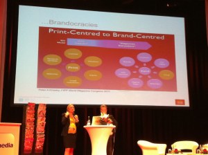Några av de från Aller som berättade om sitt jobb var affärsutvecklingsdirektör Hans Althin, Karin Lennmor – chefredaktör Svensk Damtidning, Åsa Tengvall – puplicistisk redaktör och Lotta Cederbom – annonsdirektör. Lennmor var den som verkligen bjöd på stor entusiasm för ”en 122-årig dam i väntans tider”, dvs Svensk Damtidning. Hon berättade förstås en del om deras bevakning av bröllop och allt kring kungafamiljen. Hon medgav att de inte arbetar med kritisk journalistik så man kan alltså räkna med att bara läsa gulliga saker där, inga skandaler.
