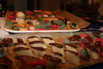 Jag gillar faktiskt inte godis och är inte heller särskilt bra på den pyssliga delen. Röra ihop kakor eller baka bröd funkar, men finliret är inte min starka sida. Men resten av familjen gillar och det är en fröjd bara att få vara med, en assistent skadar ju inte!