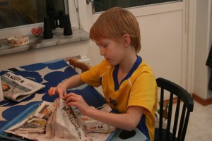 Det pysslas väldigt mycket här hemma, en favoritsysselsättning sedan länge vilket är väldigt roligt. Särskilt roligt är det när alla är med och hjälps åt. Här är det en vulkan som blivit färdigställd efter en hel del etapper med väntan och torktider.
