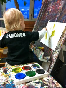 Barnen här hemma gillar verkligen att måla och skapa (och det är ju bra, skrev en del om barns kreativitet här tidigare) och igår begav vi oss tillsammans med goda vänner till Moderna Museet för att se utställningen Turner Monet Twombly samt göra egna konstverk.