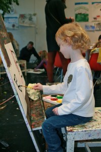 Roligt med ordentliga stafflier och att skapa vid den fina utsikt som Moderna bjuder på är inte så dumt. Det blev många fina konstverk att ta med hem tillsammans med väldigt nöjda, glada och trötta barn.