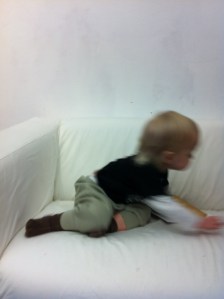 Det här med att fånga barnen på bild, det är inte det lättaste alla gånger. Här drog hon helt enkelt. Hon som satt så fint och läste, men när man väl hinner börja fota så får hon såklart syn på nåt mer intressant…