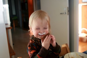 Vet inte om det är legitimt på en måndag, men i den här familjen brukar vi hitta många bra anledningar till lite fika. I dag började yngsta i förskolan, och lite efterrätt kan man väl få unna sig då? Glass blev det, och även kladdkakemuffins med grädde. Det gick ner, hon såg ut att njuta…