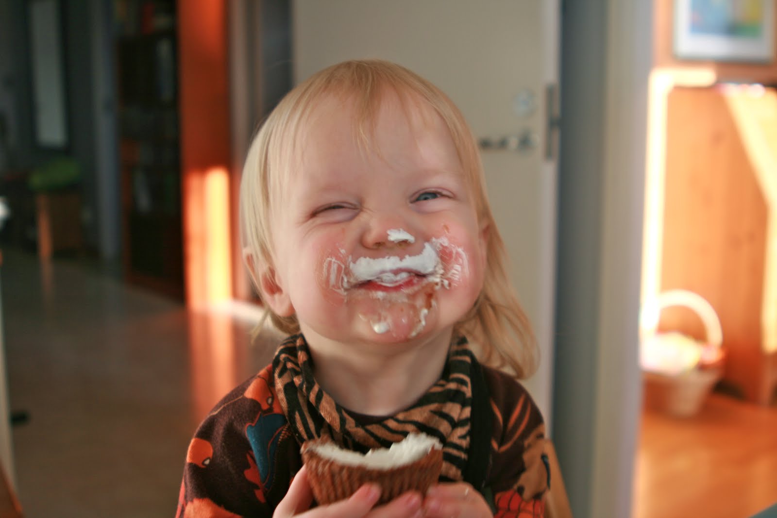 Vet inte om det är legitimt på en måndag, men i den här familjen brukar vi hitta många bra anledningar till lite fika. I dag började yngsta i förskolan, och lite efterrätt kan man väl få unna sig då? Glass blev det, och även kladdkakemuffins med grädde. Det gick ner, hon såg ut att njuta…