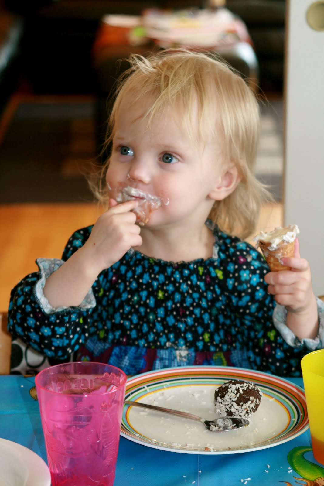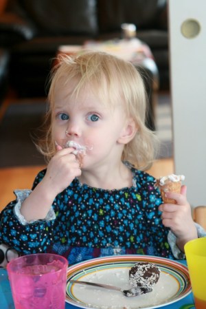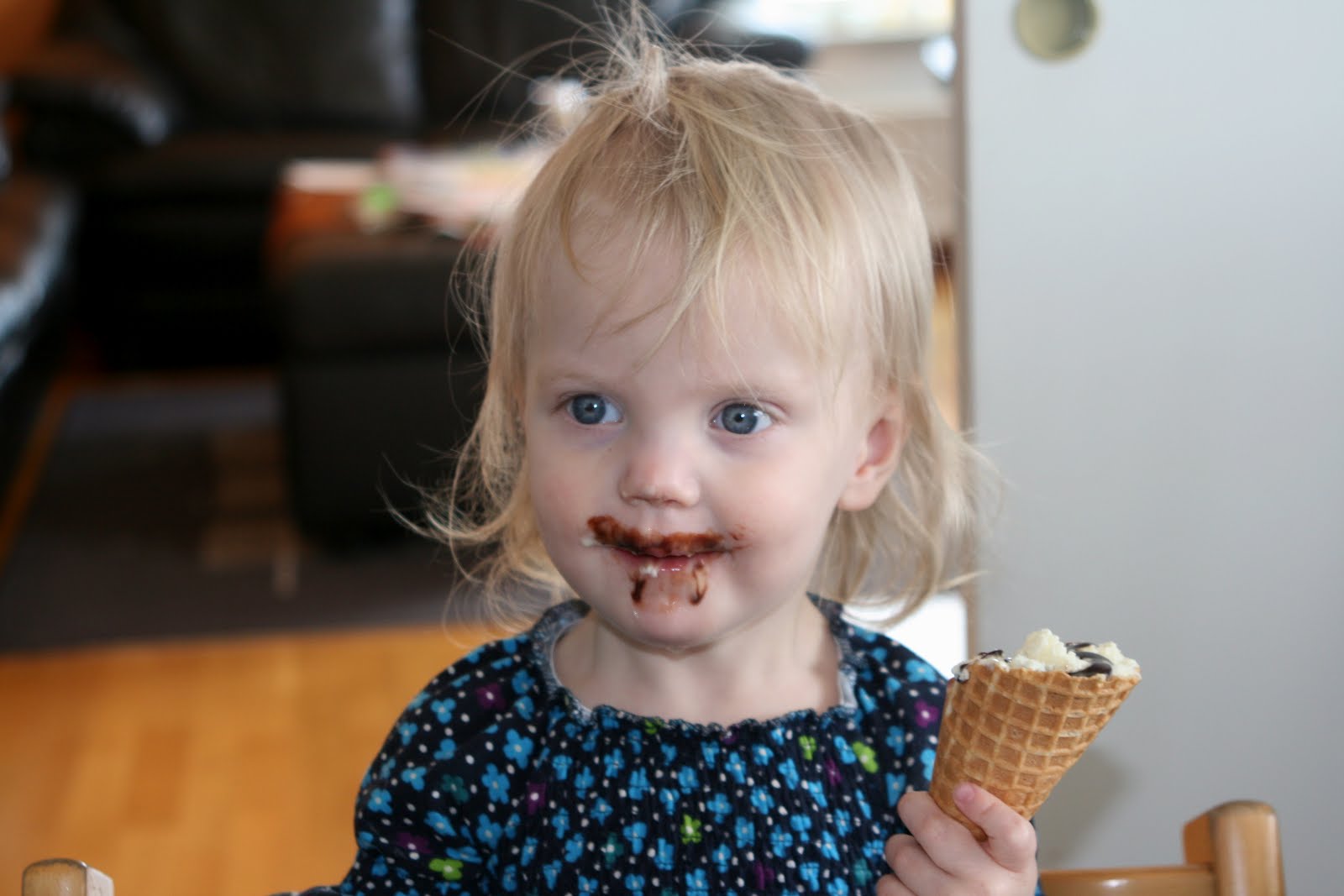 Blev väldigt nöjd när hon väl fick sin glass och jag tror att hon åt nästan all grädde som fanns själv.