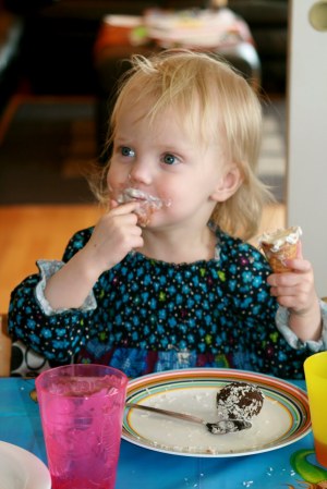 Grädde fylldes på hela tiden och hon satt kvar och njöt långt efter att alla barn gått från bordet. Då fick hon till slut gräddskålen och fick äta upp det sista direkt ur. Inte så nyttigt kanske men nån gång ibland skadar väl inte?