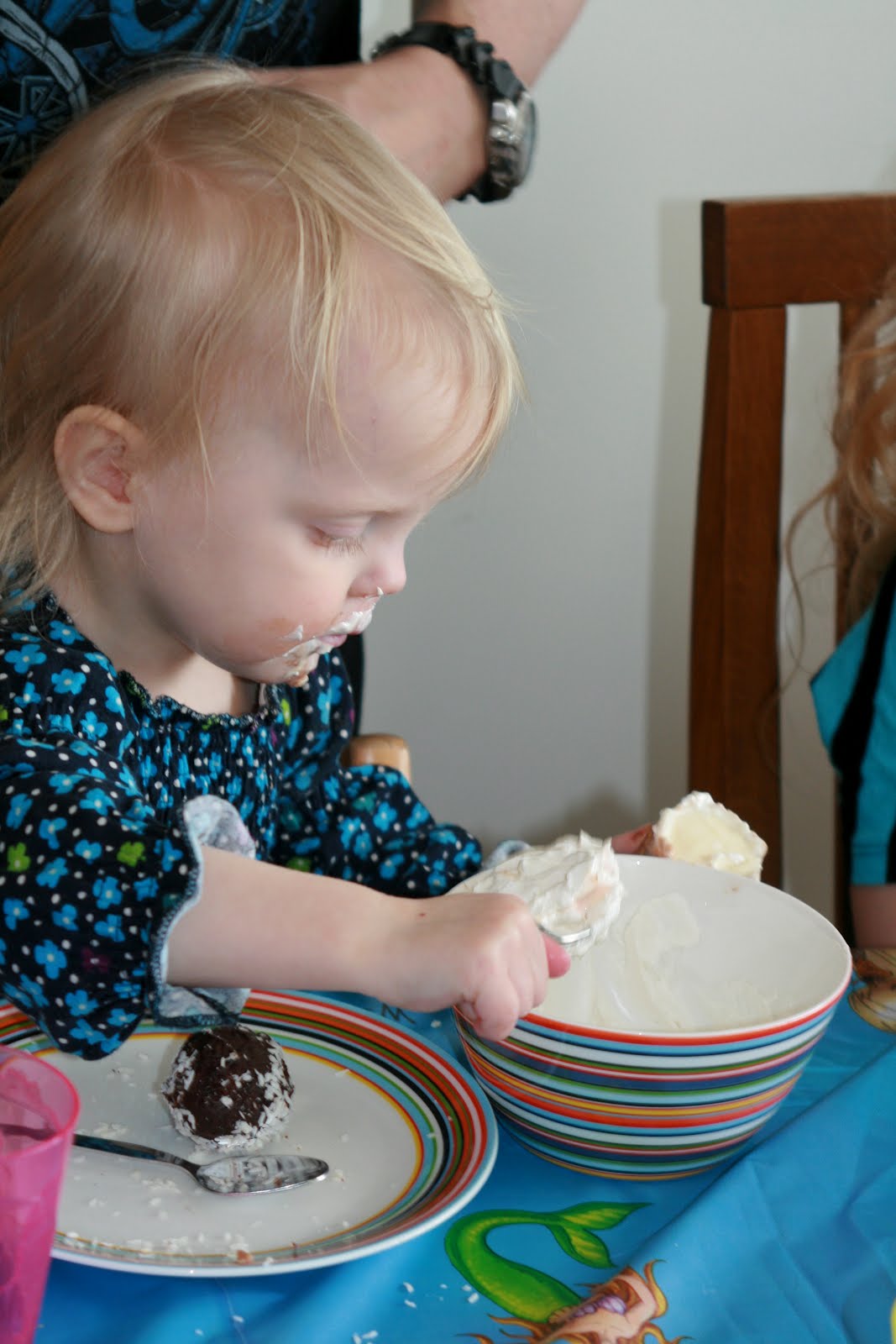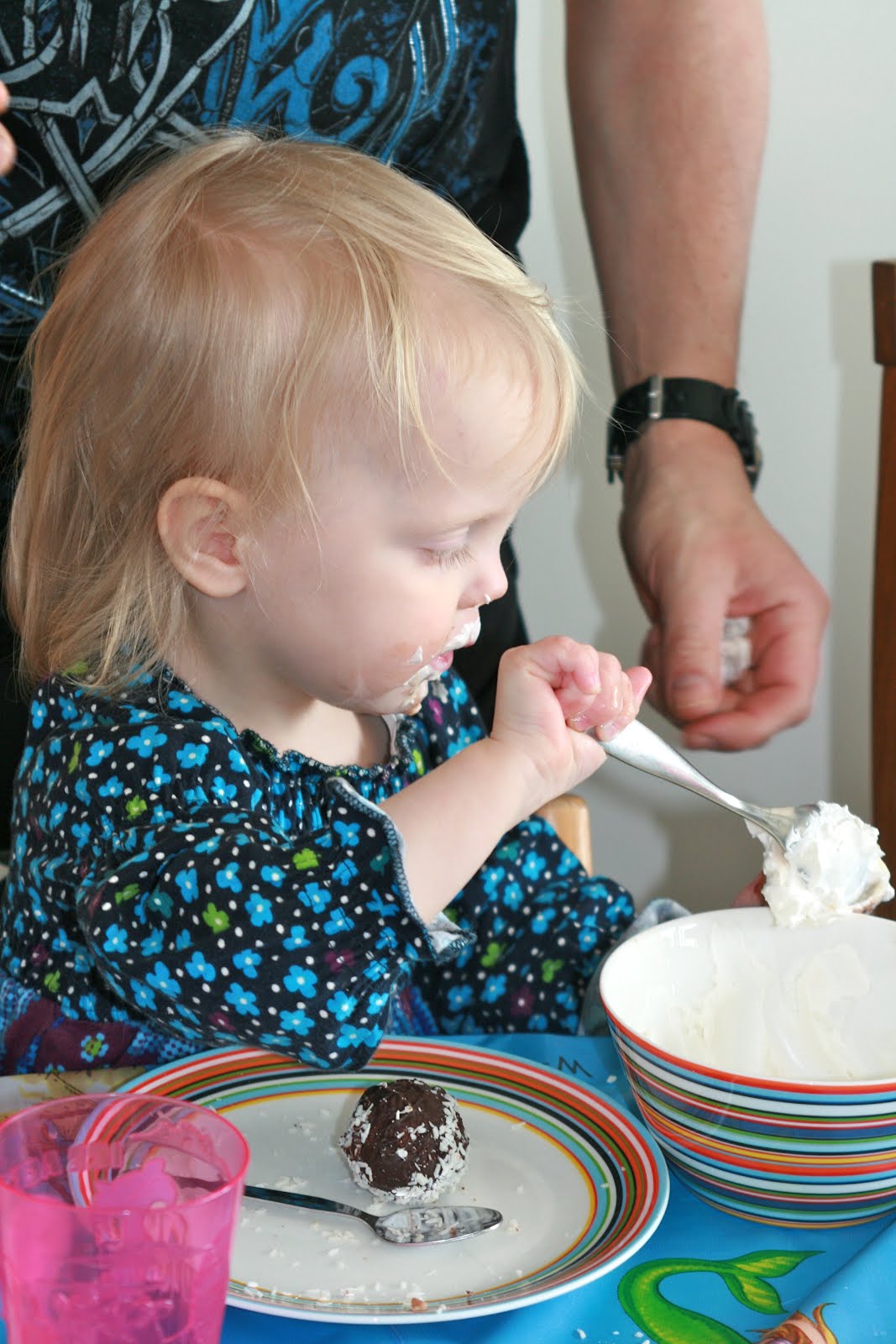 Hennes pappa tyckte att hon var väääldigt lik mig då. Och jag är rädd att det är sant, få kan väl frossa och njuta så oerhört av fika, framförallt om det är grädde med i bilden, som jag.