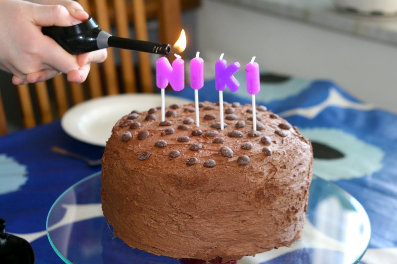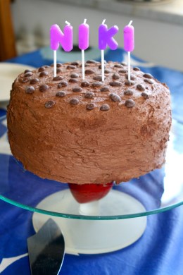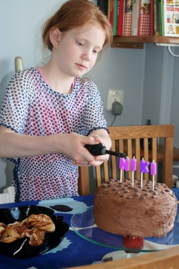 Chokladtårtan föll henne i smaken, den var ju faktiskt garnerad med ”hennes” godis dagen till ära.