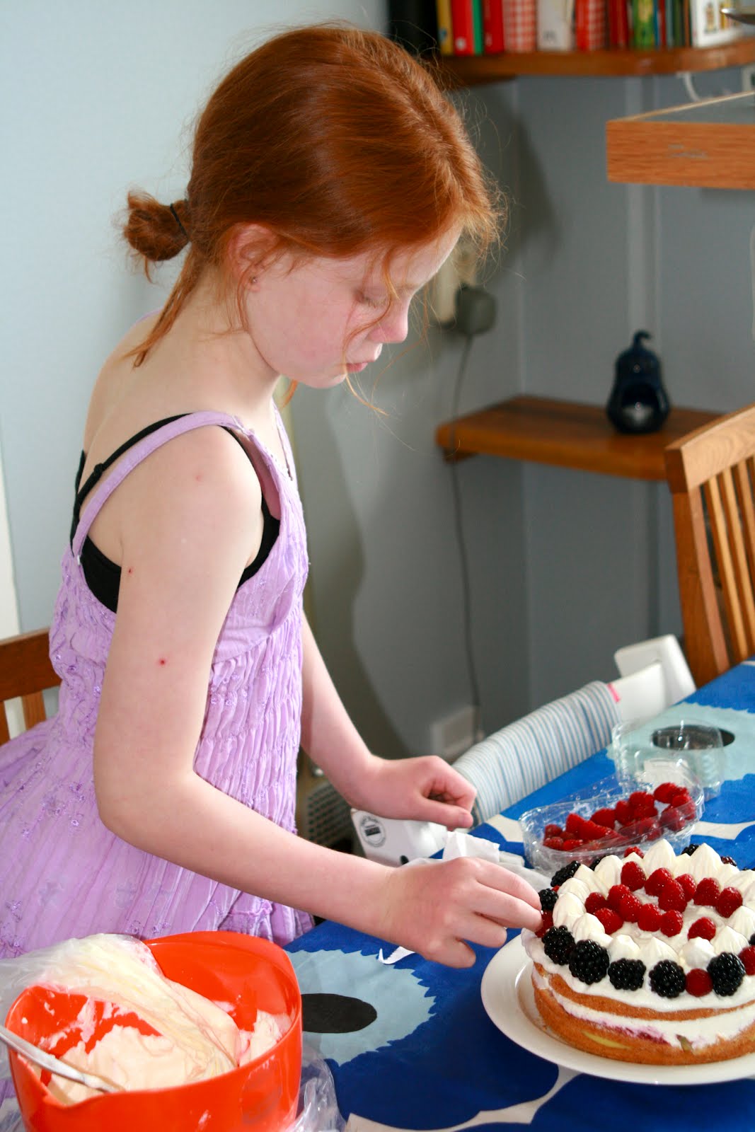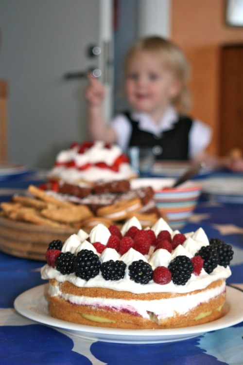 Tårtorna gjorde hon helt själv, där fick jag inte vara med alls visade det sig. Två stycken nästan identiska tårtor blev det och även väldigt lika de vi gjorde för någon vecka sedan.