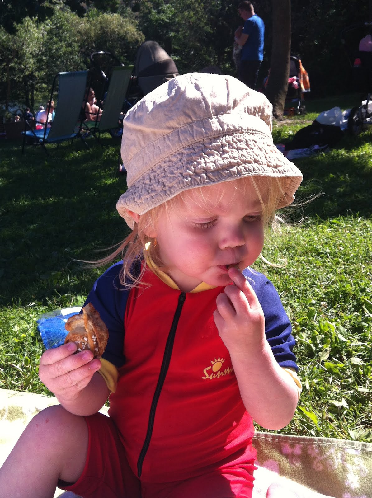 Nu har äntligen sommarvärmen kommit men oavsett temperatur ser faktiskt våra dagar relativt lika ut. Vi går upp och myser en stund tillsammans på morgonen, sedan äter vi frukost och gör i ordning matsäck. Sedan drar vi iväg nånstans. Målet är förstås olika så på det viset är såklart inte dagarna sig lika, det kan vara museum, badstrand, lekpark etc. Ungefär som alla andra småbarnsfamiljer antar jag.