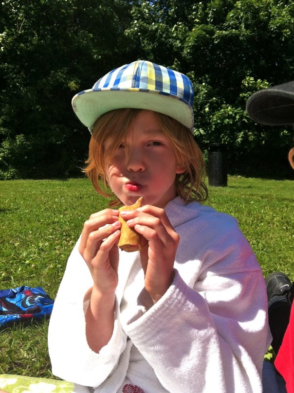 Det enda smolket i bägaren är väl näringsintaget på lunchen. Vi är riktiga pannkaksälskare i den här familjen och det är ju en så himla bra matsäcksmat så det blir dessvärre det till lunch på tok för ofta. Varvas med olika typer av sallader, men måste nog erkänna att pannkakan leder frekvensen och den är knappast den mest innehållsrika måltid man kan tänka sig. Men vad sjutton, det är ju sommarlov!