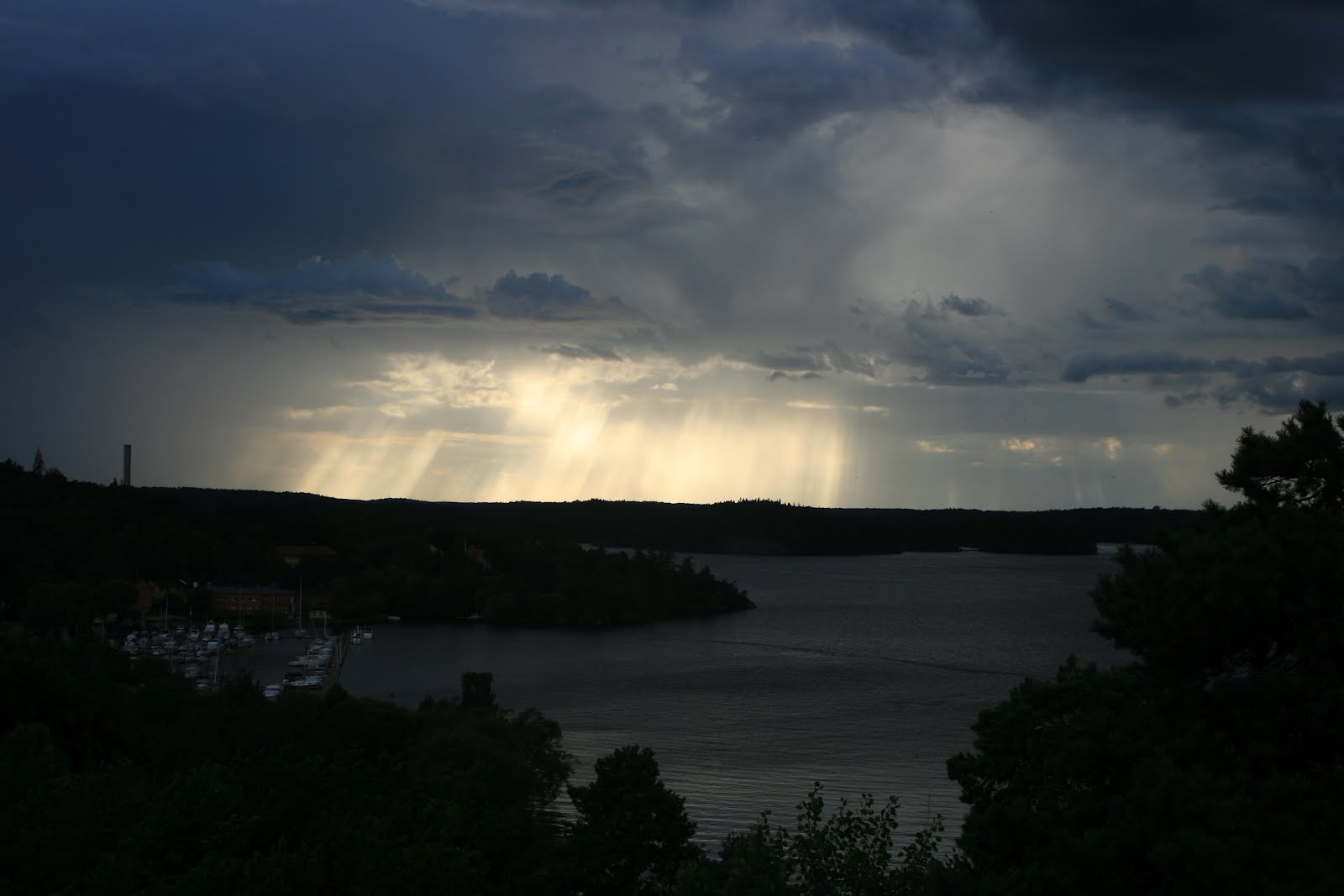 Det ser onekligen ut som att det är på gång i alla fall. Och åskan mullrar långt borta. Vackert och mysigt efter en solig dag.