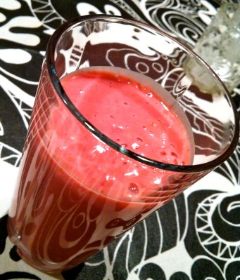 Måste dela med mig av den här smoothien! Det är återigen min son som triumferar i köket. Han har tidigare slängt ihop recept på goda maträtter och nu valde han ut lite ingredienser till en smoothie som blev så god. Jag trodde verkligen inte det då det var så olika ingredienser, men det blev det.