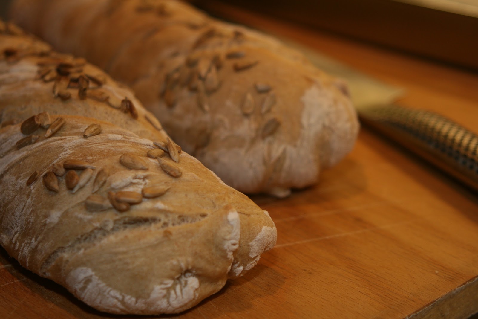 Barnen var sugna på rostat bröd, men jag hade inte tillräckligt med formar till det (två var ju upptagna till grahamsbrödet) så istället fick det bli baugetter, så lätt att baka, passade bra bland allt annat.