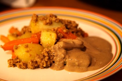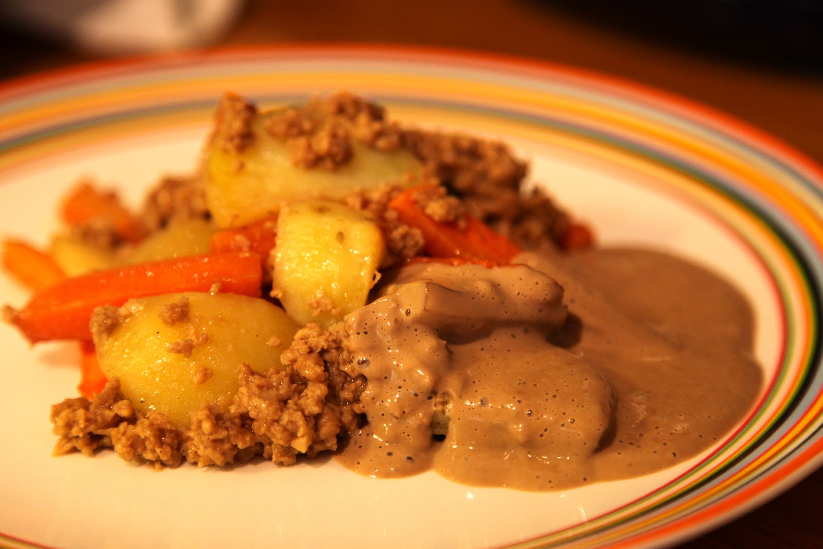 Efter att ha vunnit en hel massa mat från Anamma så tänkte jag att jag även skulle testa några av deras recept. Redan innan vinsten gick det åt väldigt mycket färs hemma hos oss, och det har knappast minskat sedan dess. Vi har nu lagat deras färslåda några gånger med lite ändringar för att passa oss lite mer. En god låda, husmanskost kanske man inte ”får” kalla det men med brunsås till så tycker jag nog att det är rätt så nära.