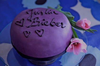 Ingen har väl kunnat undgå den Bieber-hysteri som pågår nu. Här är det Bieber dagarna i ända och med det stundande Stockholmsbesöket så blev det till råga på allt Bieber cake i helgen. Självfallet måste tårtan vara lila och blåbärsmoussen i är löjligt god. Man får lust att äta en skål bara av den.
