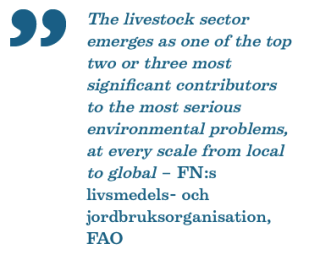 Djurhållningen använder stor del av den odlingsbara marken i världen, antibiotikaanvändningen är omfattande och vattenförbrukningen likaså. Man kan se det ur flera olika vinklar men oavsett vilken så är det dessvärre till det sämre för miljön.
