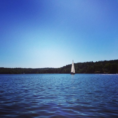 Att det bjöds på blå himmel och strålande sol var ju inte svårt att se redan vid frukosten men nog trodde jag allt att det skulle vara lite kyligt i luften, men icke. Efter korvgrillningen till lunch fanns inga alternativ till bad, annars hotade överhettning. Det var 19,1 grader i Mälaren där vi var och man inbjöds därmed till långt bad och solen var som sagt så varm att man kunde soltorka. Vilken lycka!