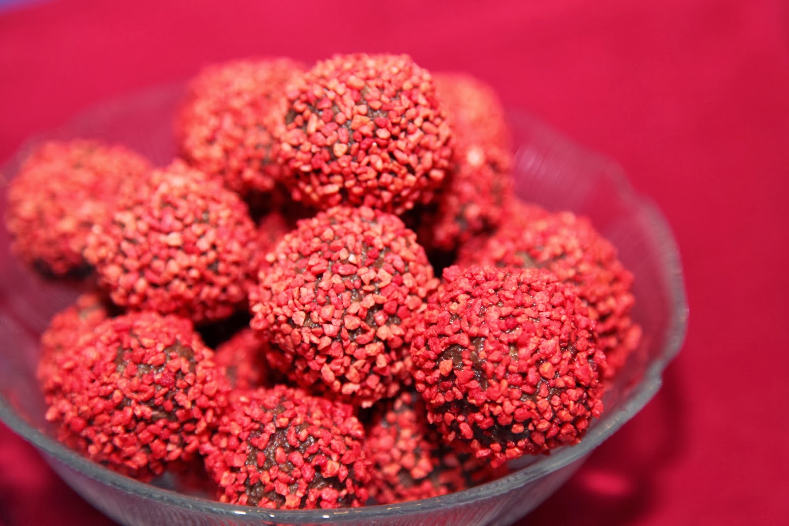 För lite gladare bollar, eller för att följa något tema, färga gärna sockret. Här har vi gjort röda kärleksbollar, för att ladda inför Alla hjärtans dag. Och bollarna passar ju alla dagar, bästa vardagsfikat. Vill man göra en lyxigare variant, satsa på chokladbollar de luxe.