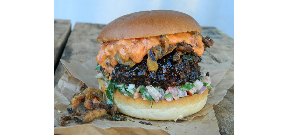 – I början lagade jag mat inspirerad från Mellanöstern och skapade den första burgaren – rödbetsfalafel med karamelliserad lök, hummus på grilla paprika och vitlöksmarinerad aubergine – som blev så populär att jag började experimentera fram nya burgare, berättar Selina Hami.
