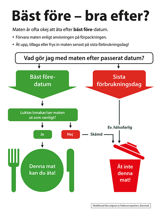 Livsmedelsverkets har själva en kampanj, “Bäst före – bra efter?” vilken är en del i arbetet för att få konsumenter att bli bättre på att ta hand om sin mat. Önskan är att vi ska lita på lukt och smak istället för att bara gå efter ett datum. Vi behöver bli mer medvetna om skillnaden mellan “Bäst före-datum” och “Sista förbrukningsdag”. Bäst före är just vad det står, att varan troligen är bäst före men kan vara precis lika bra senare. Däremot den mer striktare “sista förbrukningsdag” betyder att maten kan vara hälsofarlig och inte bör konsumeras efter angivet datum.