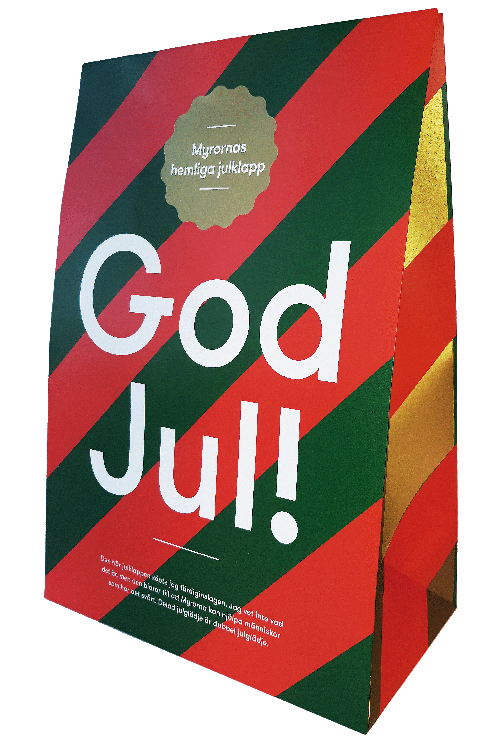 Även Myrorna vill uppmärksamma den goda julhandeln och erbjuder för andra året i rad en välgörenhetsjulklapp. Det är en färdiginslagen gåva med hemligt innehåll där allt överskott från försäljningen går till att hjälpa människor som har det svårt.
