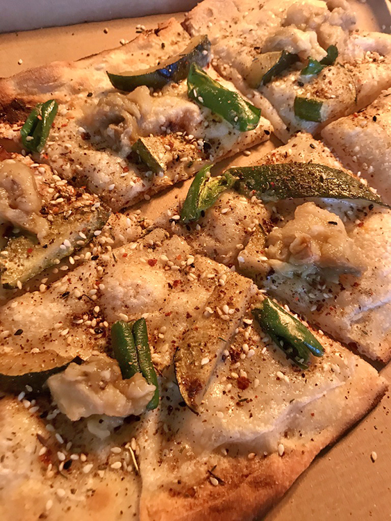 Desto mer mättande, och oerhört god, var den vita pizzan med havre fraiche, za’atar krydda, pimientos padrones, grillad zucchini, auberginekaviar och persilja. Jag älskar pizza och blev verkligen inte besviken på denna, så härligt med en lite ovanligare kryddning än vad en oftast får på pizza annars.