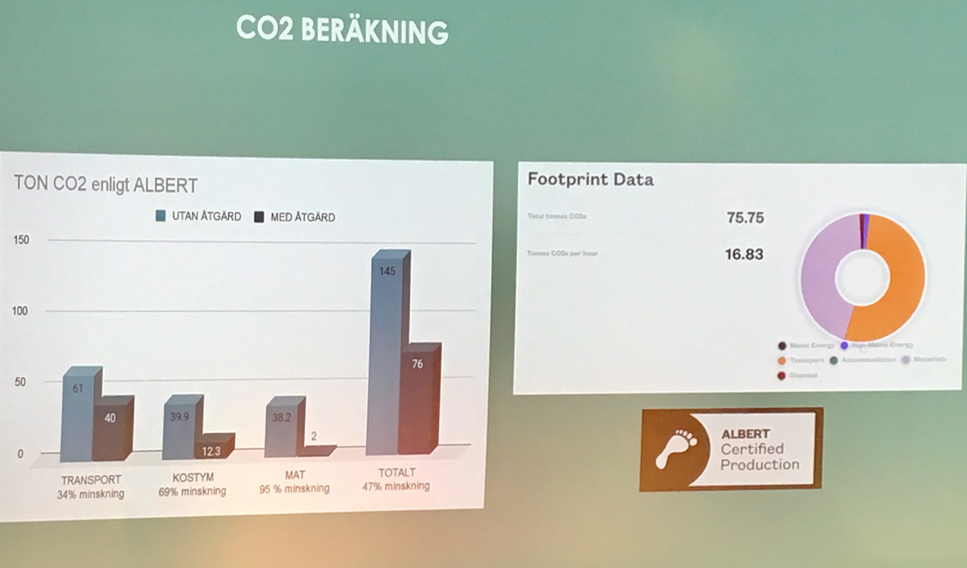 Detta var något som Maikol Petersen, Nationella Produktionsnätverket, har tittat på. Han presenterade en studie baserad på en långfilmsbudget som visade att hållbara beslut kan leda till kostnadsbesparingar. Alla poster blir inte billigare men den totala budgeten innebar i detta fall en besparing.