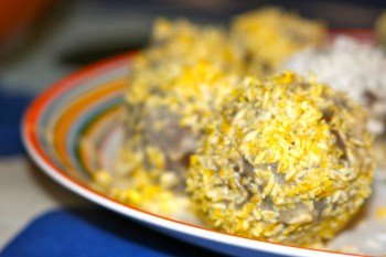 Tärna tofun och stek den och veefbitarna i olja några minuter tills bitarna är genomstekta och tofun fått fin yta. Hacka rödlöken och persiljan, tärna gurkan och blanda sedan samman alla ingredienser.